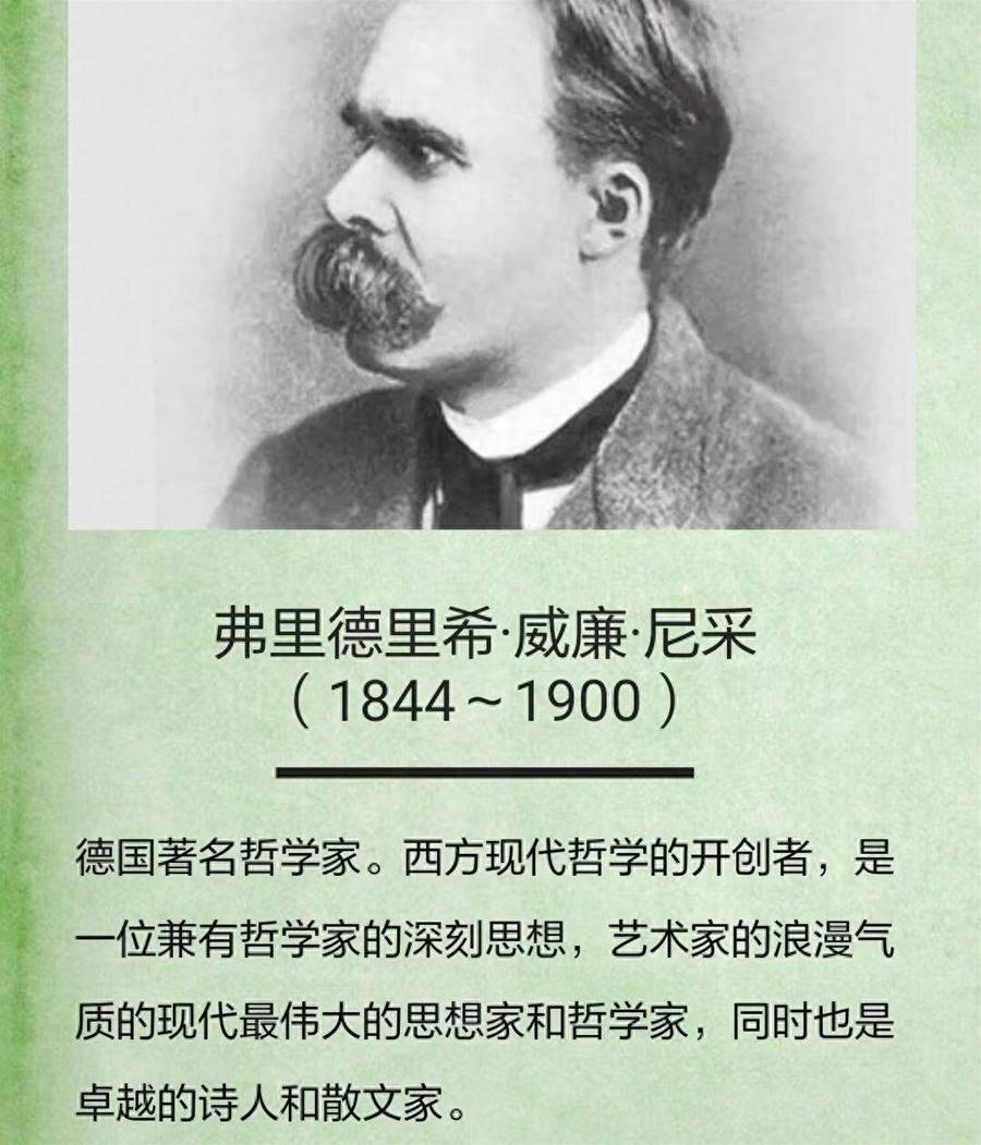 說起尼采的論斷以及思想我認為寫幾本書都寫不下,他的思想為人們的精神自由做出了重要貢獻,自由的前提是平等和知識。所以我們要享受教育,接受在這個平等的今天帶給我們的自由。
